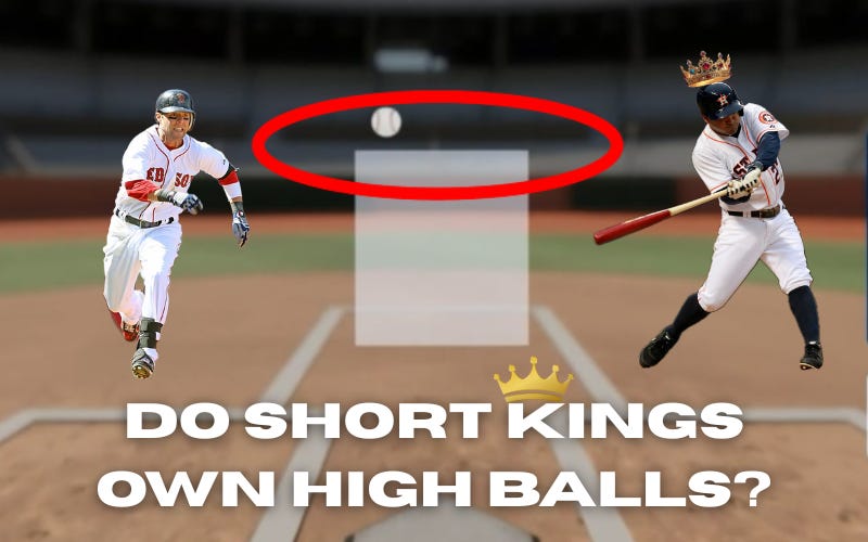 I was watching the first game of the Cubs vs Brewers twin bill on Monday afternoon when an announcer’s quip sparked my curiosity. Five foot eight Brewers third baseman Caleb Durbin roped a double on a letters high fastball. The ball was up and in on the hands, and Durbin impressively turned on it for a liner at 102 MPH EV. That’s when Cubs’ color commentator Jim Deshaies noted a pattern he's noticed overtime. Admitting it may be more anecdotal for the former big league hurler, he stated that short hitters are always the best high ball hitters.